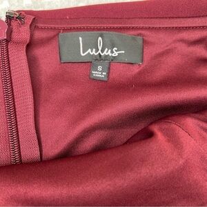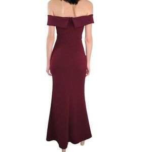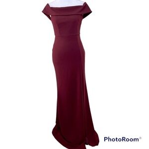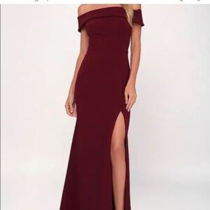 Lulus Aveline Burgundy Off-the-Shoulder Maxi Dress. Size Small. Long Gown with Side Slit. Stunning, Fitted Formal Dress. Short Sleeve Dress with a Princess-Seamed Bodice. Fully-Lined. Excellent condition. Approx measurements laying flat: