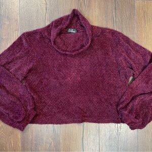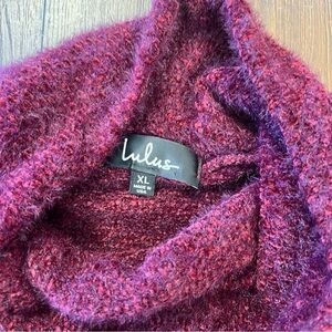 Lulu’s Avrina Wine Red Knit Turtleneck Cropped Sweater Top SZ XL