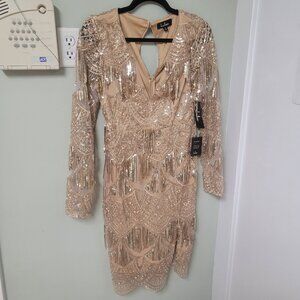 Brand new with tags Lulu's Awe-Inspiring Gold Embroidered Sequin Midi Dress.