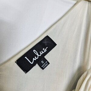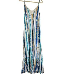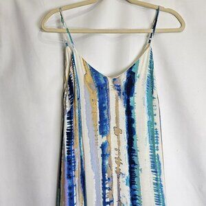 Lulus Bay Side Babe Cream and Blue Tie-Dye Maxi Dress Sleeveless Drapey Lined S