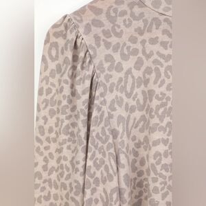 Lulus Exclusive! Your confidence is sure to go up in the Lulus Be Bold Beige Leopard Print Balloon Sleeve Top! Soft stretch knit, with a grey leopard print, shapes this trendy top that has a rounded neckline, long balloon sleeves with fitted cuffs, and a relaxed bodice. This top can be dressed up or down for a wildly cute look!
