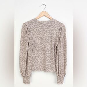 Lulu’s Be Bold Beige Leopard Print Balloon Sleeve Top