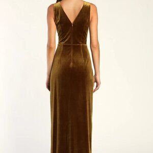 Lulus Beautiful Evenings Olive Green Velvet Twist-Front Maxi Dress