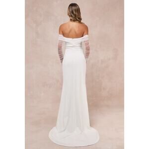 Lulus “Beautifully Beloved” White Mesh Off-the-Shoulder Maxi Dress – Medium NWT