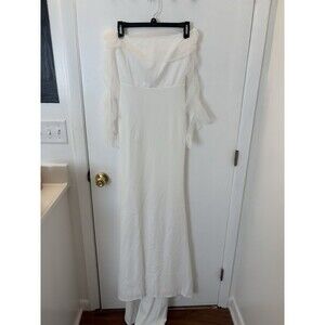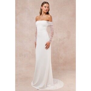 Lulus Beautifully Beloved White Mesh Off-the-Shoulder Maxi Dress Size XS Bridal