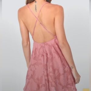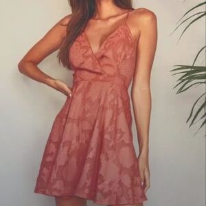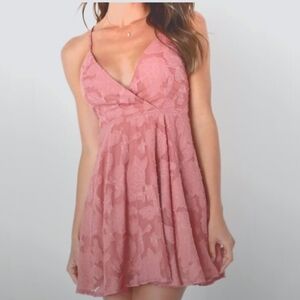 Lulu’s Beauty Rose Pink Burnout Floral Spaghetti Strap Mini Skater Dress XS