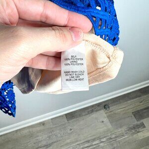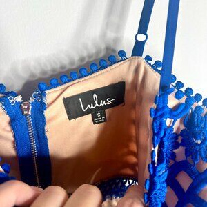 Lulus Beauty and Lace Royal Blue and Nude Crochet Lace Mini Dress Coquette Sz S
