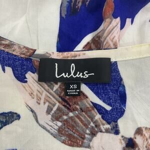 Lulu's Beige & Blue Floral Women's Blouson Dress, XS, Rayon, Long