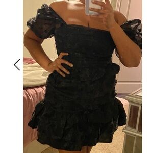Lulus Exclusive! You're sure to steal hearts and take names in the Lulus Beloved Beauty Black Polka Dot Puff Sleeve Ruffled Mini Dress! This little head-turner kicks things off with a luxe woven organza construction--covered in black velvet polka dots--that creates sheer, puffed sleeves that frame a square neckline, and a seamed, ruched bodice. Fitted waist, trimmed with a band of lovely ruffles, tops a slightly flared A-line skirt with additional ruching along the sides and a flirty, tiered ruffle hem. Exposed silver zipper and hidden clasp closure at back.