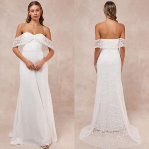 Lulu's Beloved Beginning White Embroidered Off-the-Shoulder Maxi Dress M Bridal