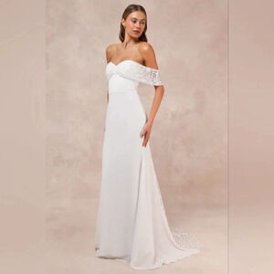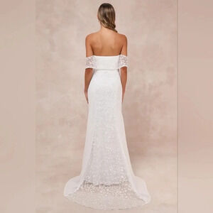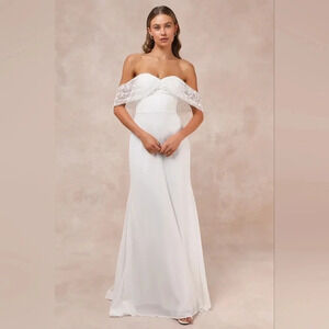 Lulu's Beloved Beginning White Embroidered Off-the-Shoulder Maxi Dress M Bridal. New without tags. See all pictures for details.