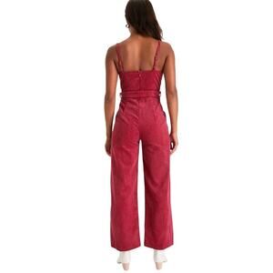 Lulus Belted Wide Leg Jumpsuit Sz S/M Seasonal Charm Corduroy Retro Mod Festival