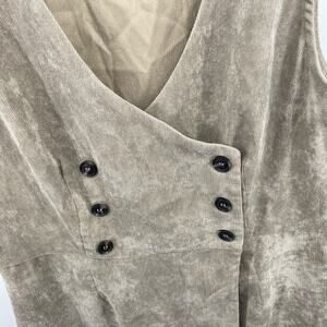 Lulus Benton Light Grey Corduroy Button-Up Sleeveless Mini Dress Deep V Sz Large