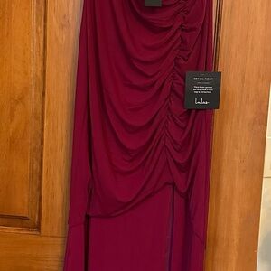 Make a statement at prom or a night out with this striking berry pink gown from Lulu's. Featuring a chic halter neckline and elegant ruching, this sleeveless dress is designed with a dramatic side slit for a touch of allure. Its floor-length silhouette and vibrant color ensure you'll stand out in any crowd. Looks more pink than red in real life. NWT