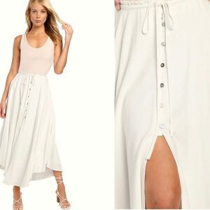 Lulu’s Best Beginnings Button-Front Midi Skirt NWT Size XS in Ivory
