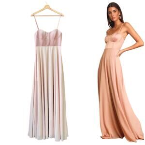Lulus Best Part of Me Blush Satin Bustier Maxi Dress Size Medium New