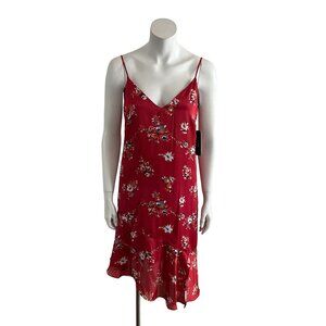 Lulus Bewitching Beauty Red Floral Print Satin Asymmetrical Slip Dress S