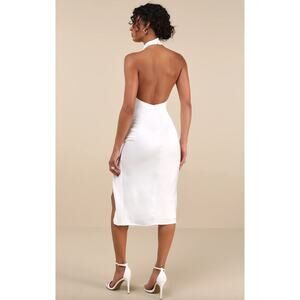 Lulus Beyond Classy White Satin Halter Midi Dress Wedding Bridal Medium NWT.
