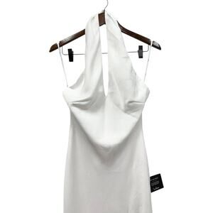 Lulus Beyond Classy White Satin Halter Midi Slip Dress size Small NWT