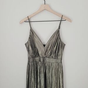 Lulus Beyond Exquisite Gold Metallic Lurex Maxi Dress Size Small
