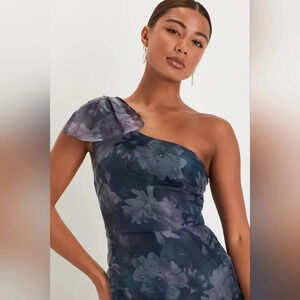Lulu's Beyond Fabulous Blue Floral Organza One-Shoulder Maxi Dress L Party. New without tags. See all pictures for details. Currently SOLD OUT.