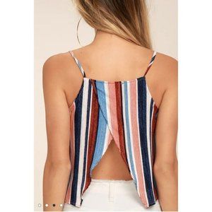 Lulus Beyond The Sea Peach Multicolor Striped Open Back Crop Top‎ Size Medium