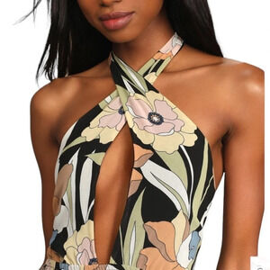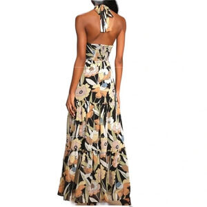 Lulu's Black Bohemian Floral Print Halter Coastal Tiered Maxi Dress Size L