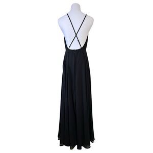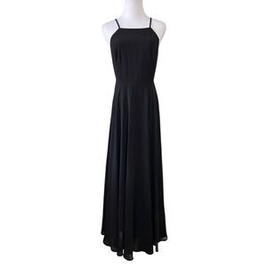 Lulu's Black Criss Cross Back Chiffon A-line Long Maxi Dress SMALL Pageant Prom