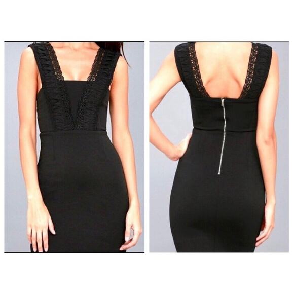 Lulu's Black Crotchet Trim bodycon Cocktail Dress Size XS