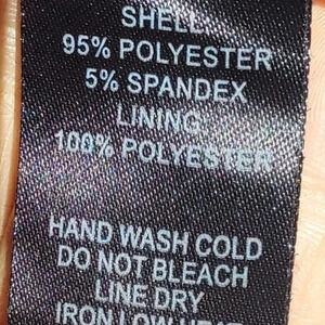 Shell: 95% Polyester, 5% Spandex. Lining: 100% Polyester.