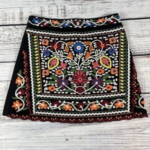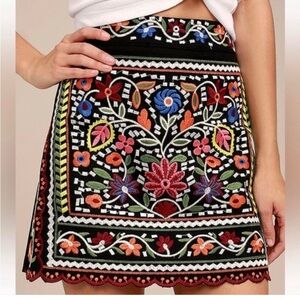 Lulus Skirt Womens Medium Black Embroidered Mini Boho Festival Flirty