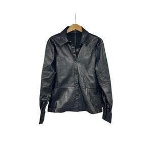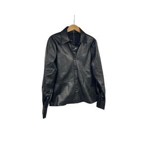 Lulu’s Black Faux Leather Jacket Shacket Puff Shoulder Womens Small
