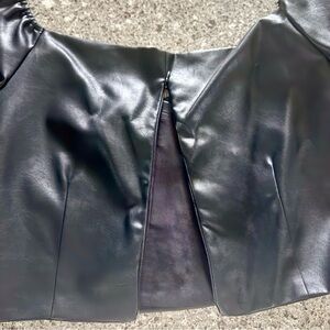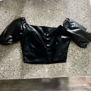 Lulu's Black Faux Leather Puff Sleeve Crop Top - Size M ⭐🖤