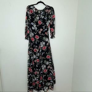 Lulu’s Black Floral Hummingbird Maxi Dress | M