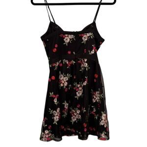 Lulu's Black Floral Mini Dress Small