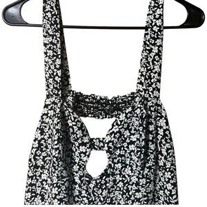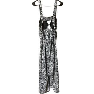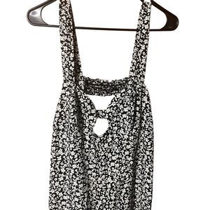 Lulu's Black Floral Sleeveless Backless Jumpsuit Sz Large Cutout -FLAW