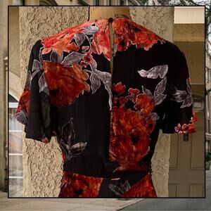 Lulus Black Floral Velvet Tie-Front Sweetest Impression Midi Dress Size S NEW