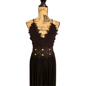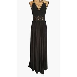 Lulus Black Lace Maxi Dress, This IS Love, Sexy Cutouts Crocheted Trim Sz S New