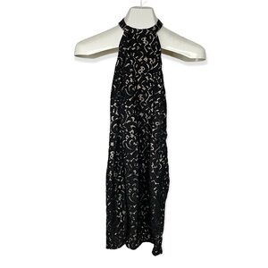 Lulus black lace overlay high neck sleeveless fitted mini dress in size small.