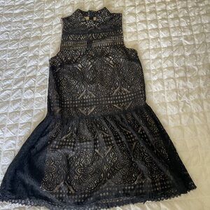 Lulu's Black Lace Sheath Dress Sleeveless Mock Neck