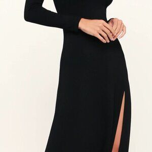 Feel like you're walking on air in the Lulus Swept Away Black Long Sleeve Maxi Dress! Super soft and stretchy jersey knit shapes a rounded neckline, long sleeves, and a flowy maxi skirt with side slit.