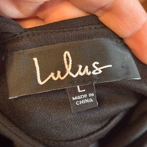 Lulus Black Maxi Dress Women’s Size L Floor Length Sleeveless Elegant Timeless. Pre owned in excellent condition. Thicker material, body hugging, strappy back, slight flare at hem.