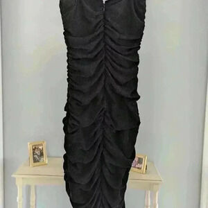 Lulu's Black Metallic Corset, Ruched Bodycon Party Dress Size Small