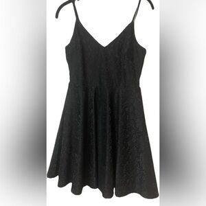Lulu's black lace adjustable shoulder strap skater dress with zipper back. Fully lined.