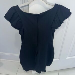 Chic black mini dress with stylish ruffle sleeves. Perfect for a night out or a funeral