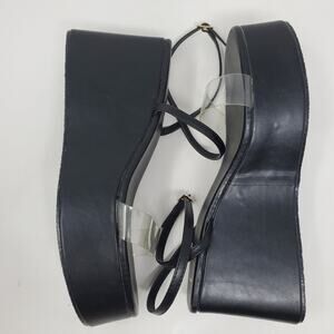 Lulus Black Platform Wedge Sandals Clear Vinyl Strap Ankle Buckle Size 8