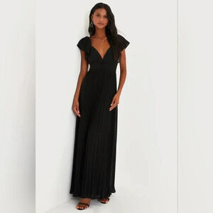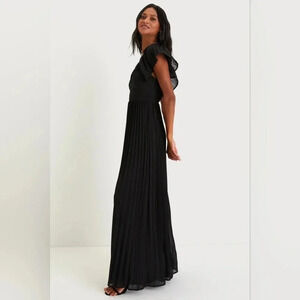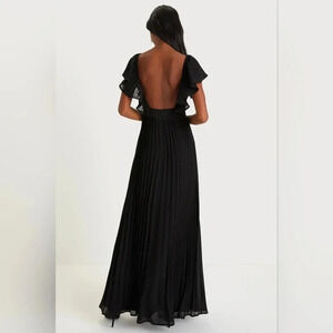 Lulu's Black Pleated Flutter Sleeve Backless Maxi DressWedding Party Guest NWT. See all pictures for details.