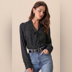 Lulus Black Polka Dot Tie Neck Women's Top Blouse Size S NWT