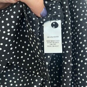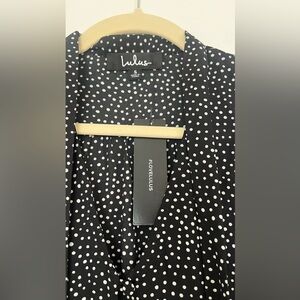 Polka dots are very chic and in style this season. This is a brand new LuLus top with cute buttons and a tie neck style. Coming from a smoke free and pet free home