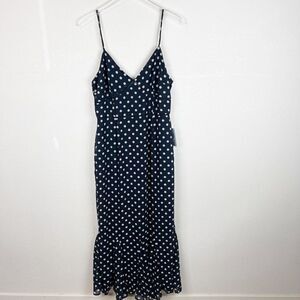 Lulus Black Polka Dot Midi Ruffle Tank Dress Sweetheart Neckline Large